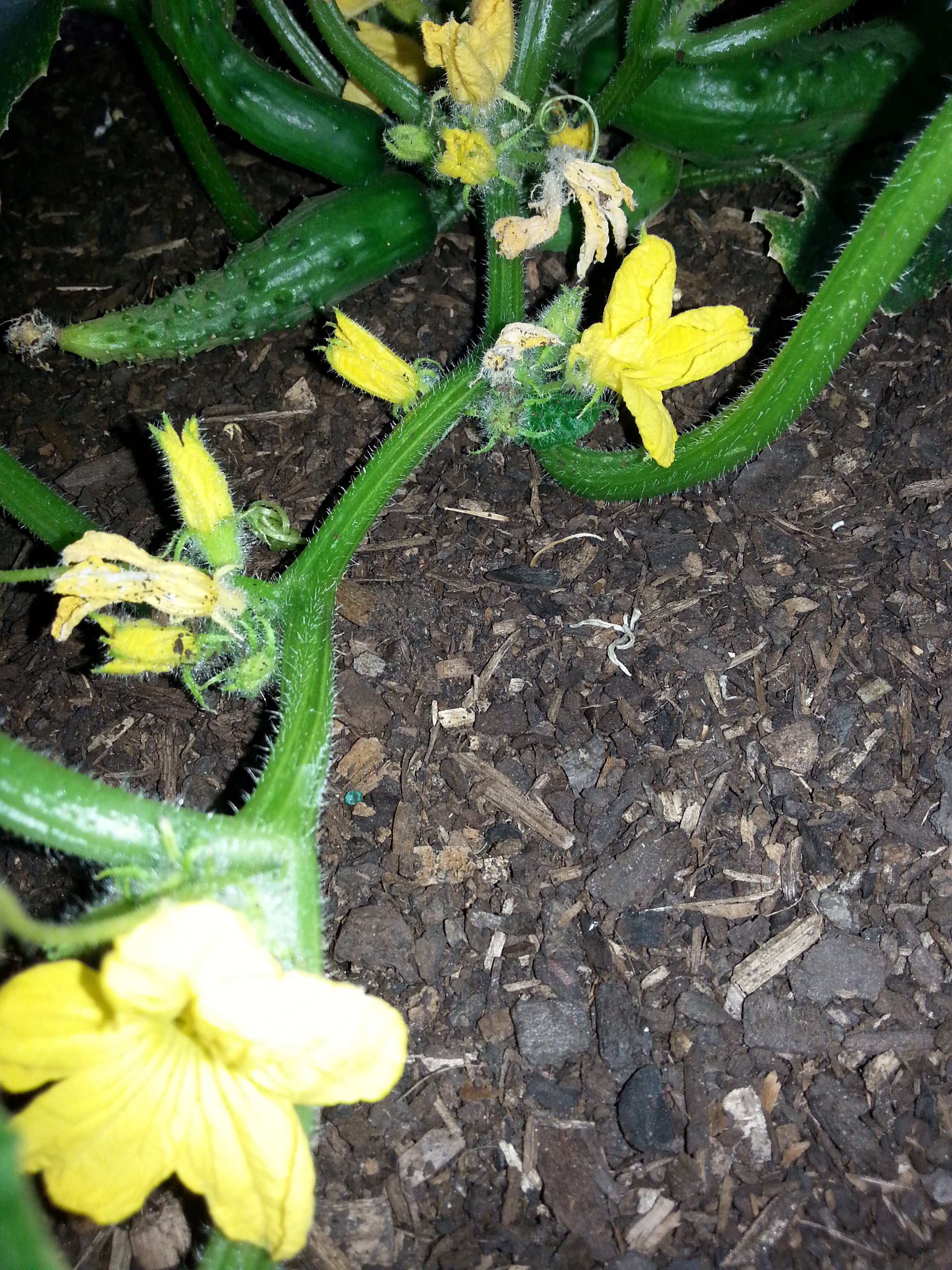 In summer 2014/2015, I grew prickly cucumbers for the first time. It always fascinates me, when growing plants for the first time, how they grow and develop. The cucumber plant spreads out its tendrils, then beautiful, small yellow flowers started appearing. The female flowers then have a small cucumber-shaped swelling at the base, that eventually become the cucumber.