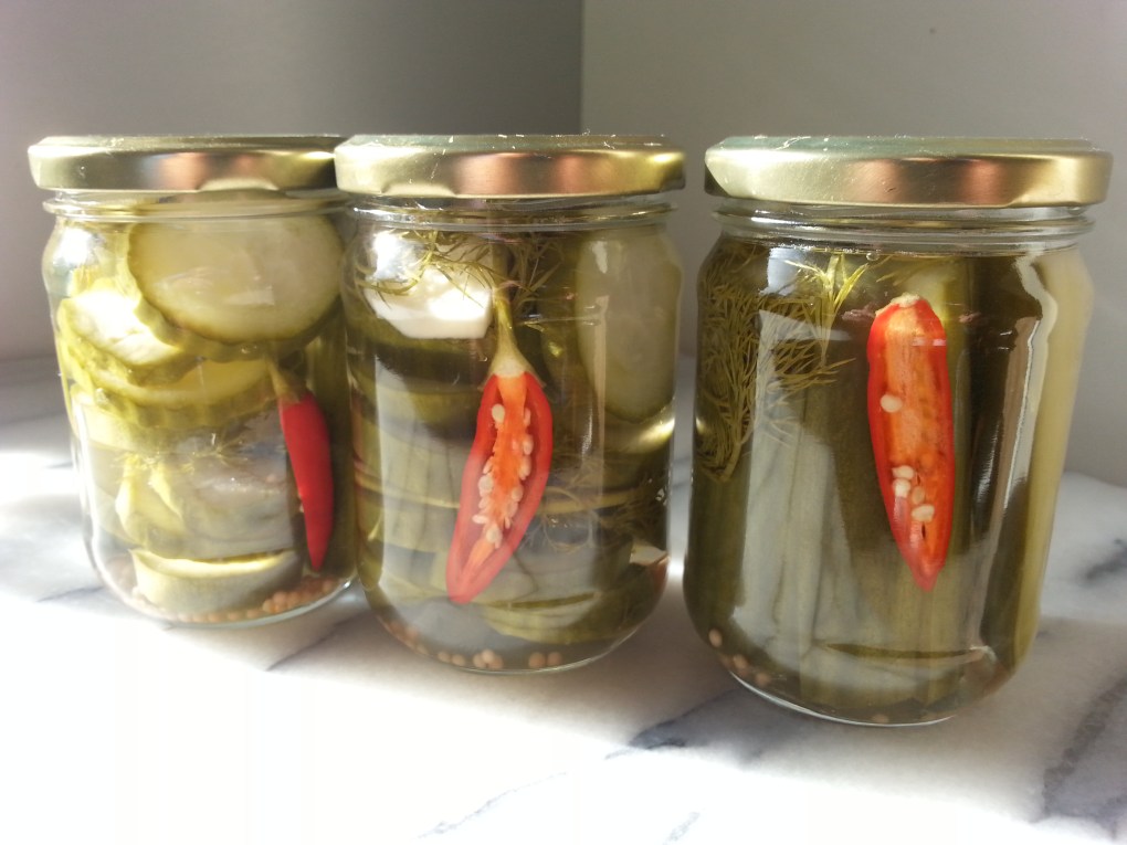 From three plants that kept giving, obviously salads were big during summer. Eventually, it got to the stage where there was too many, so my solution was to pickle. Recently, I finished the last jar which had three months on the shelf. The chilli and ginger had infused to give a nice heat to the pickled cukes, which gave them another dimension compared to shop bought ones.